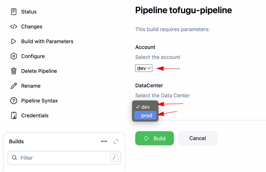 On the left menu, click on Build. This will download and execute the `Jenkinsfile` from the repository.