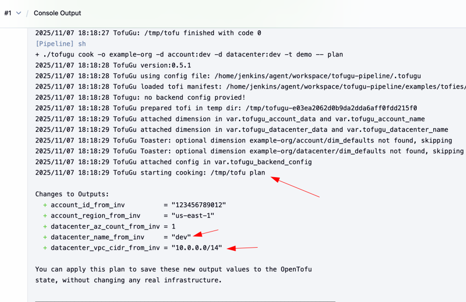 Build #1 should start. Click on the build link to open the console output: http://127.0.0.1:8080/job/tofugu-pipeline/1/console.